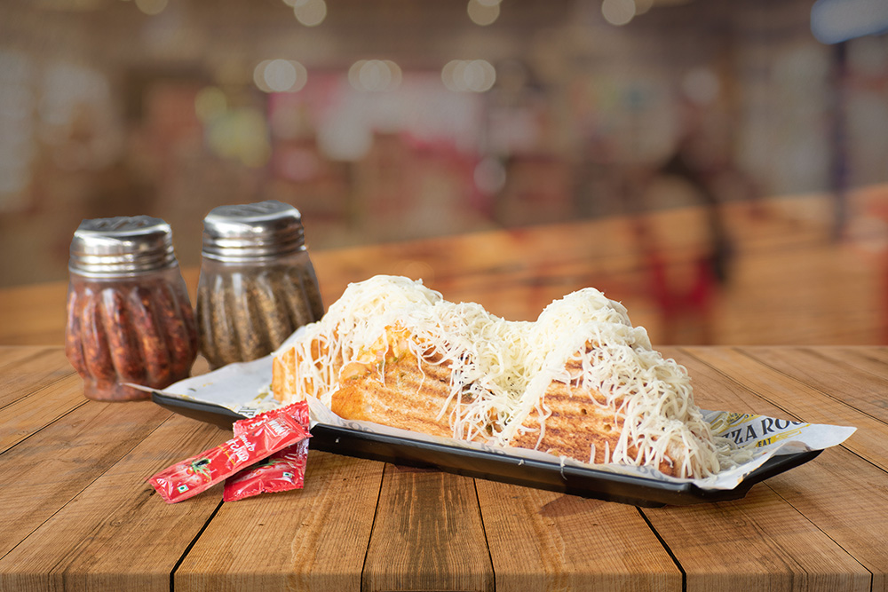 Comes with the goodness of extra cheese. You can see oodles of mozzarella cheese coming out with every bite, making the pizza all the more delicious.