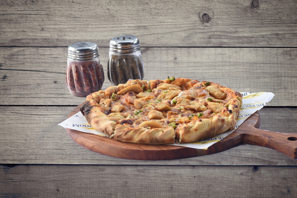 This pizza is sure to make a very exciting meal, as it uniquely blends Italian and Oriental cuisines! It’s included with jalapenos, chopped onions and capsicum, puree tomatoes and Fresh paneer and mozzarella cheese with two premium sauces.